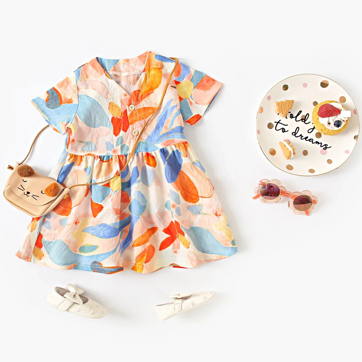 Sanlutoz Casual Short Sleeve Baby Dress Country Style Little Girls Dress Summer