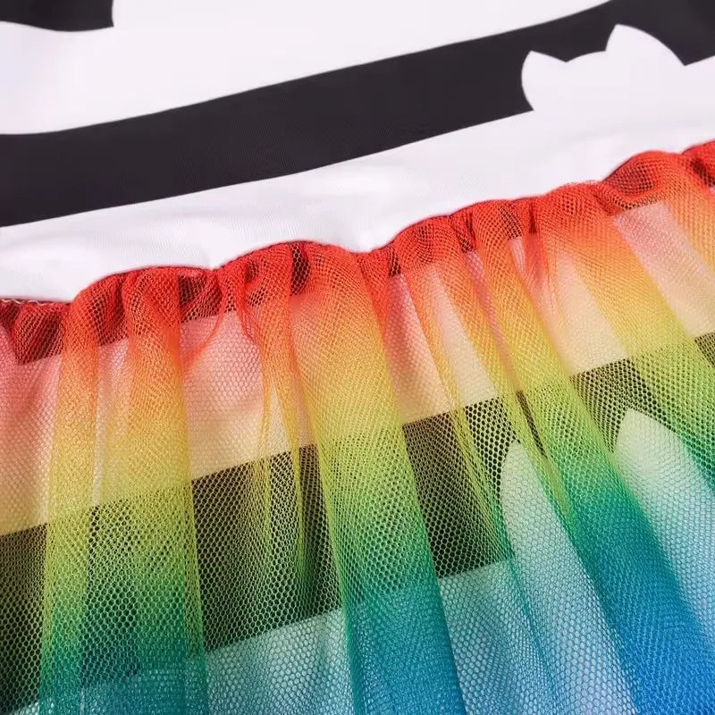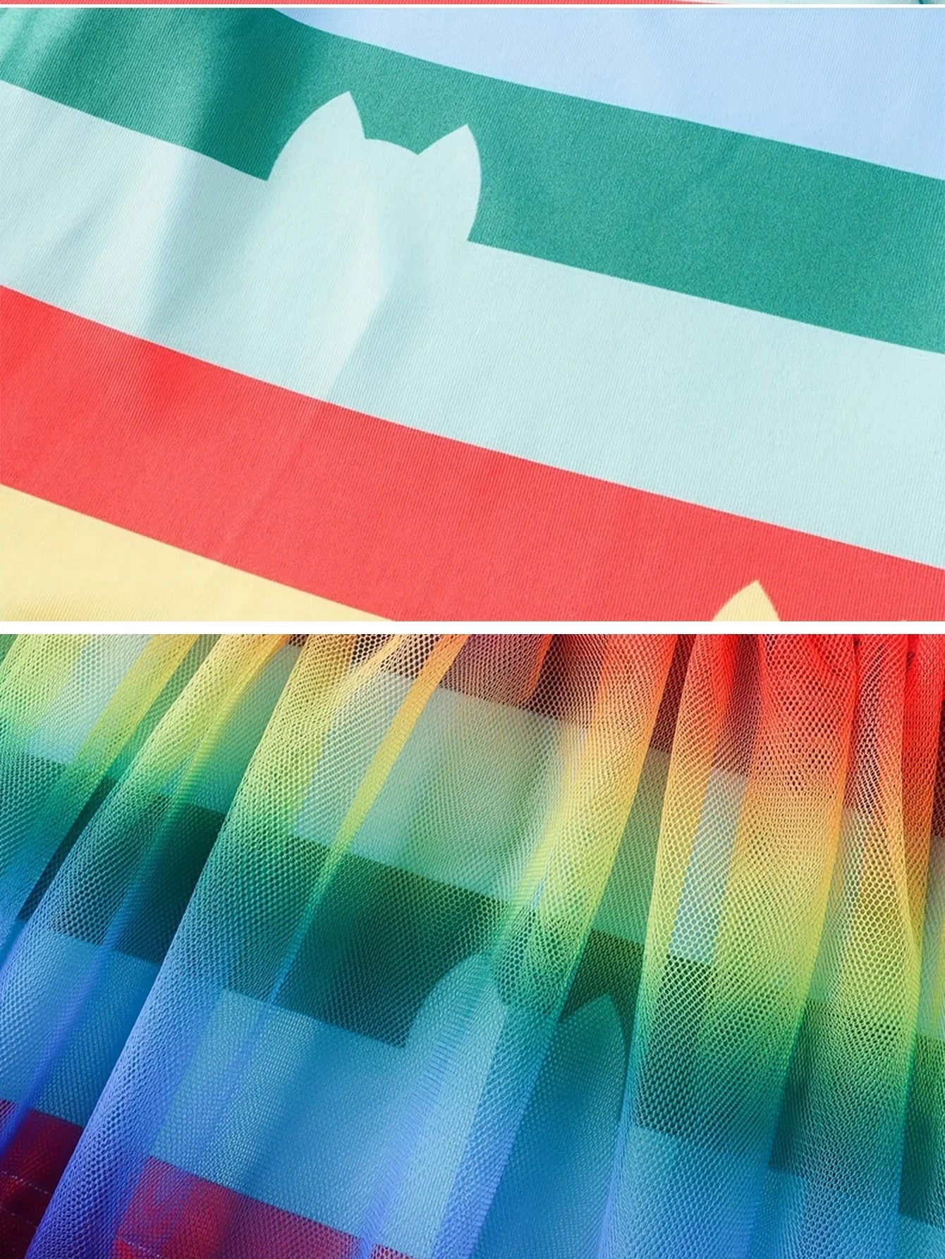 High-quality soft costume fabric: Crafted from smooth, soft high-quality fabric, this girls rainbow birthday costume clothes set has a gentle, comfy feel. The stretchy fabric moves with her movements for carefree mobility.