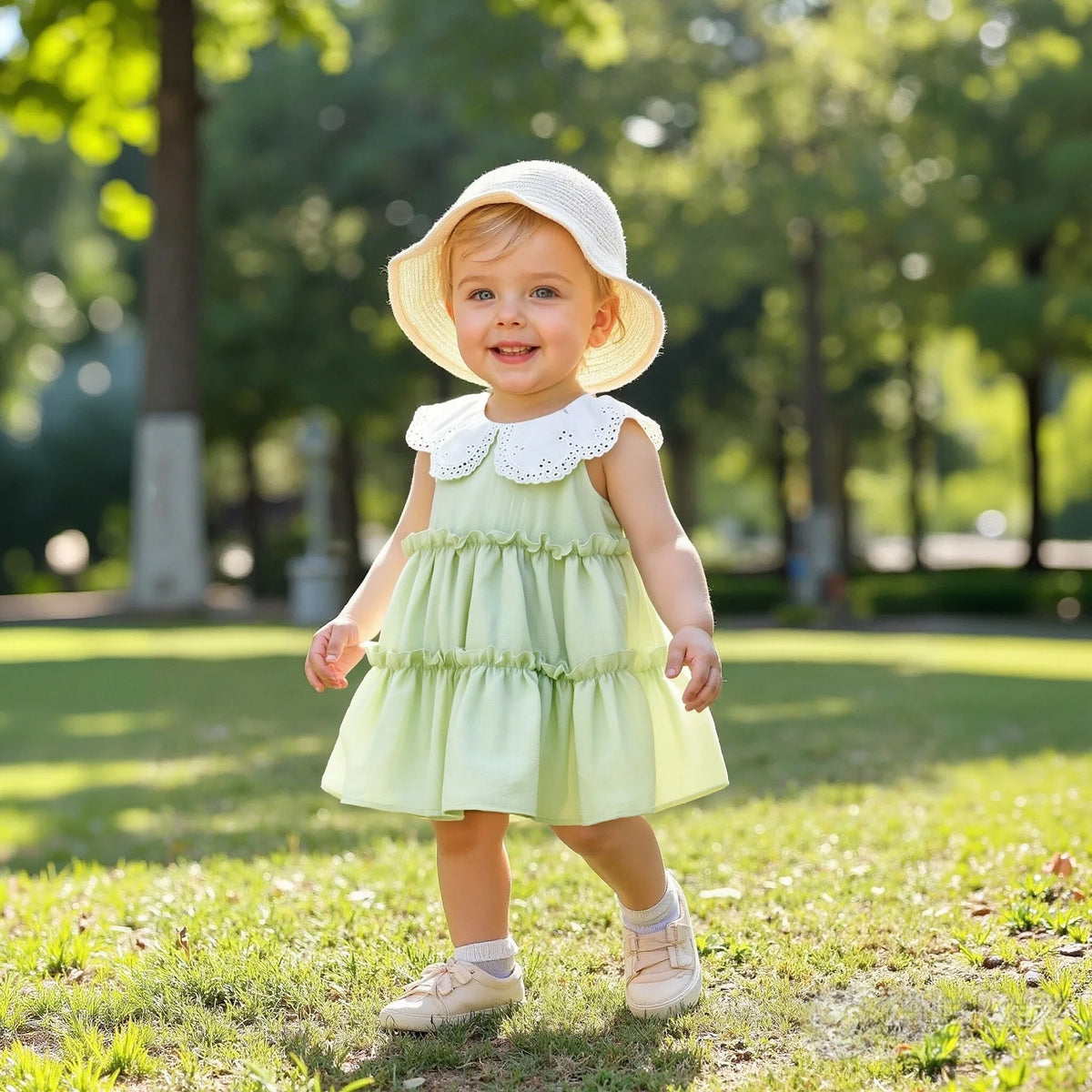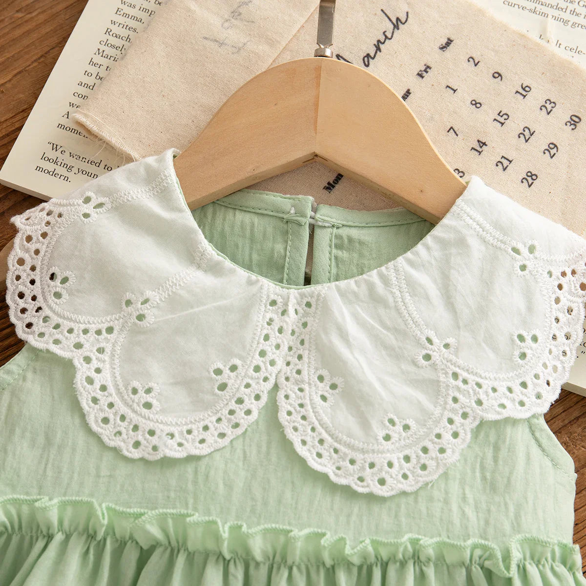 Summer New Solid Color Lace Trim Doll Neck Gentle Baby Dresses Cute Casual Baby Girl's Girl Princess Dresses