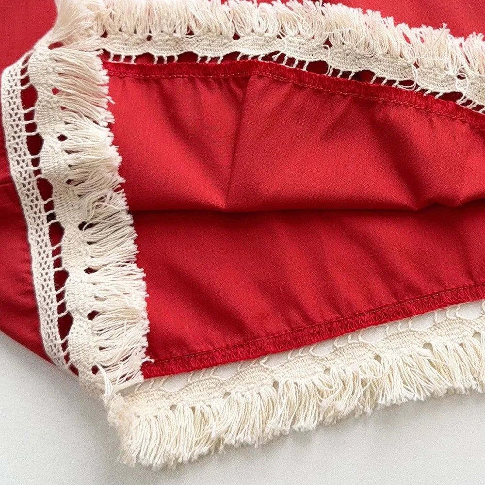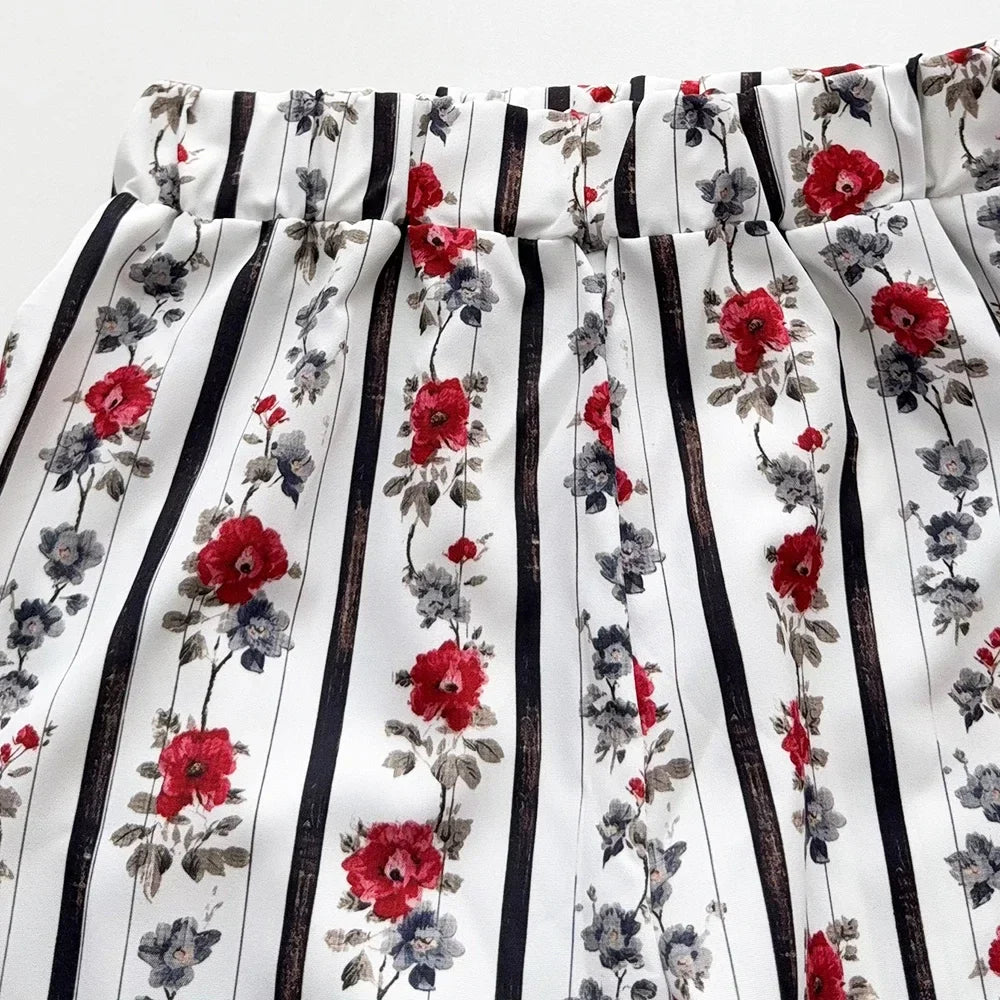 Summer New 3-7Y Girls Casual Clothes Korean Version Children Sleeveless O-Neck Tassel Top + Flower Print Pants 2 Pcs Set