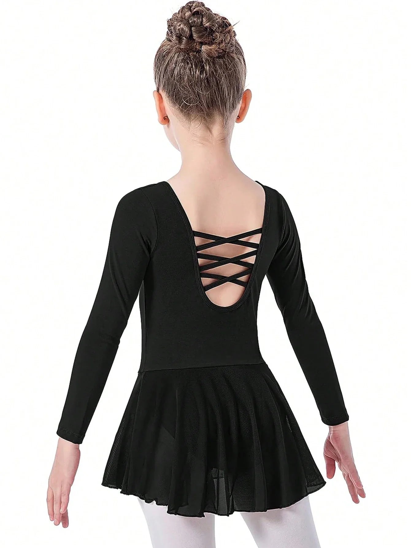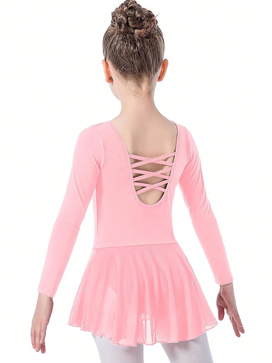Girls' Ballet Leotard Toddler hollow out Back Dorsal do alternately Long Sleeve Skirt Kids Mesh Dance Dress