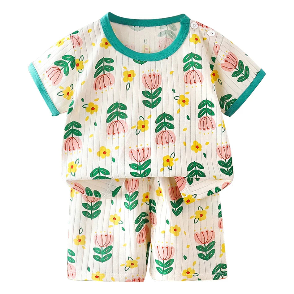 2 Pcs Dinosaur Print T-shirt Set Children's Cartoon Pajamas Sets Boys Kid's Short Sleeve Summer Korean Style Baby Girl Clothes