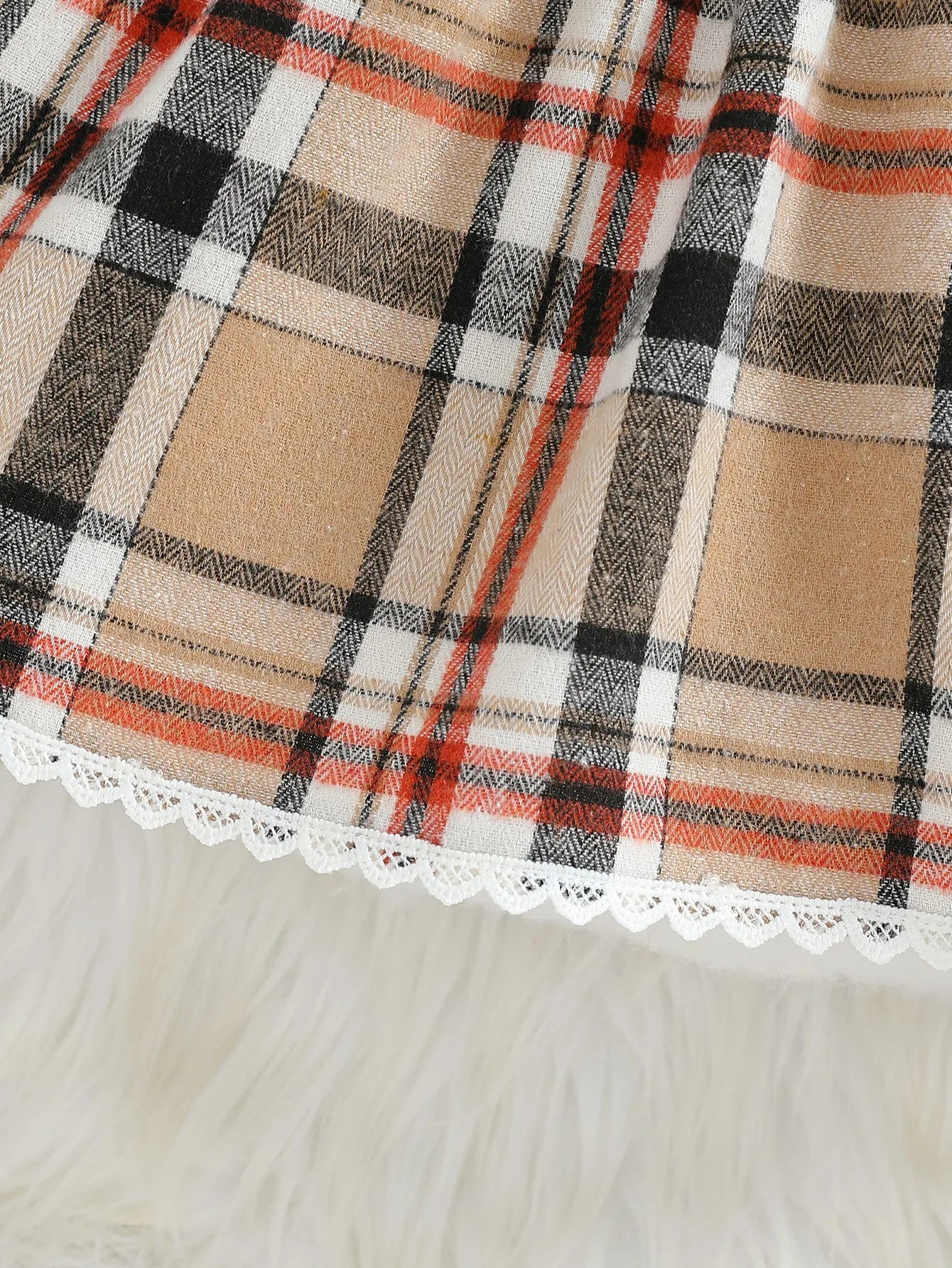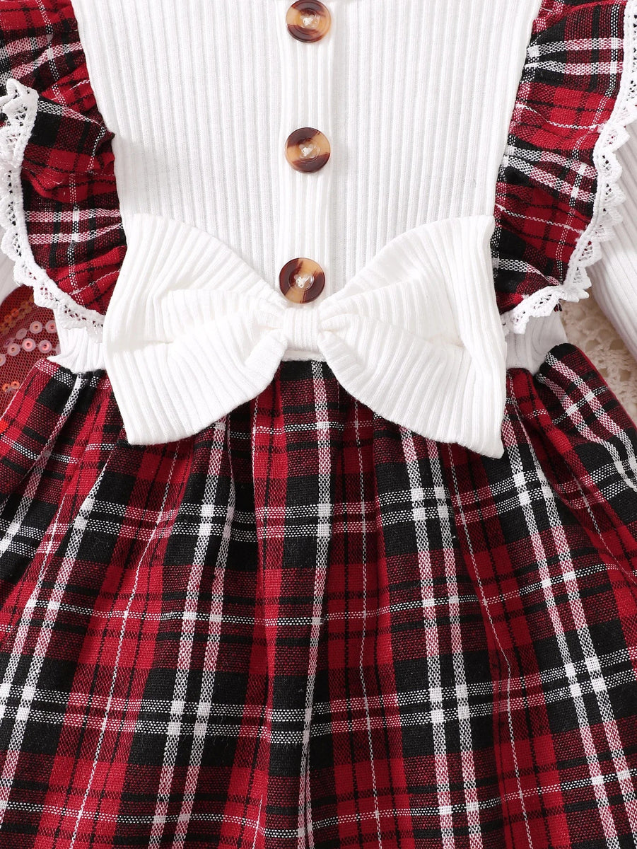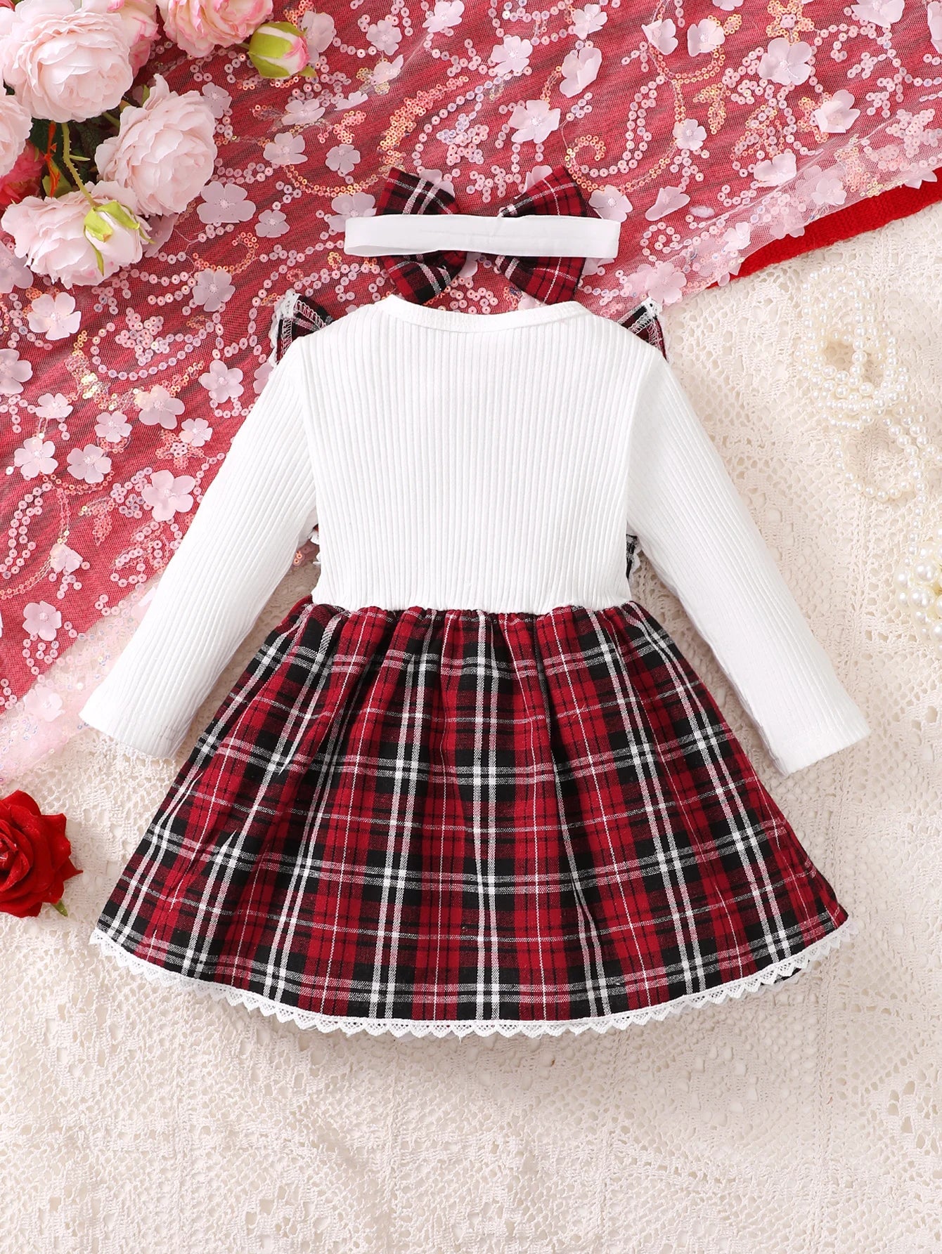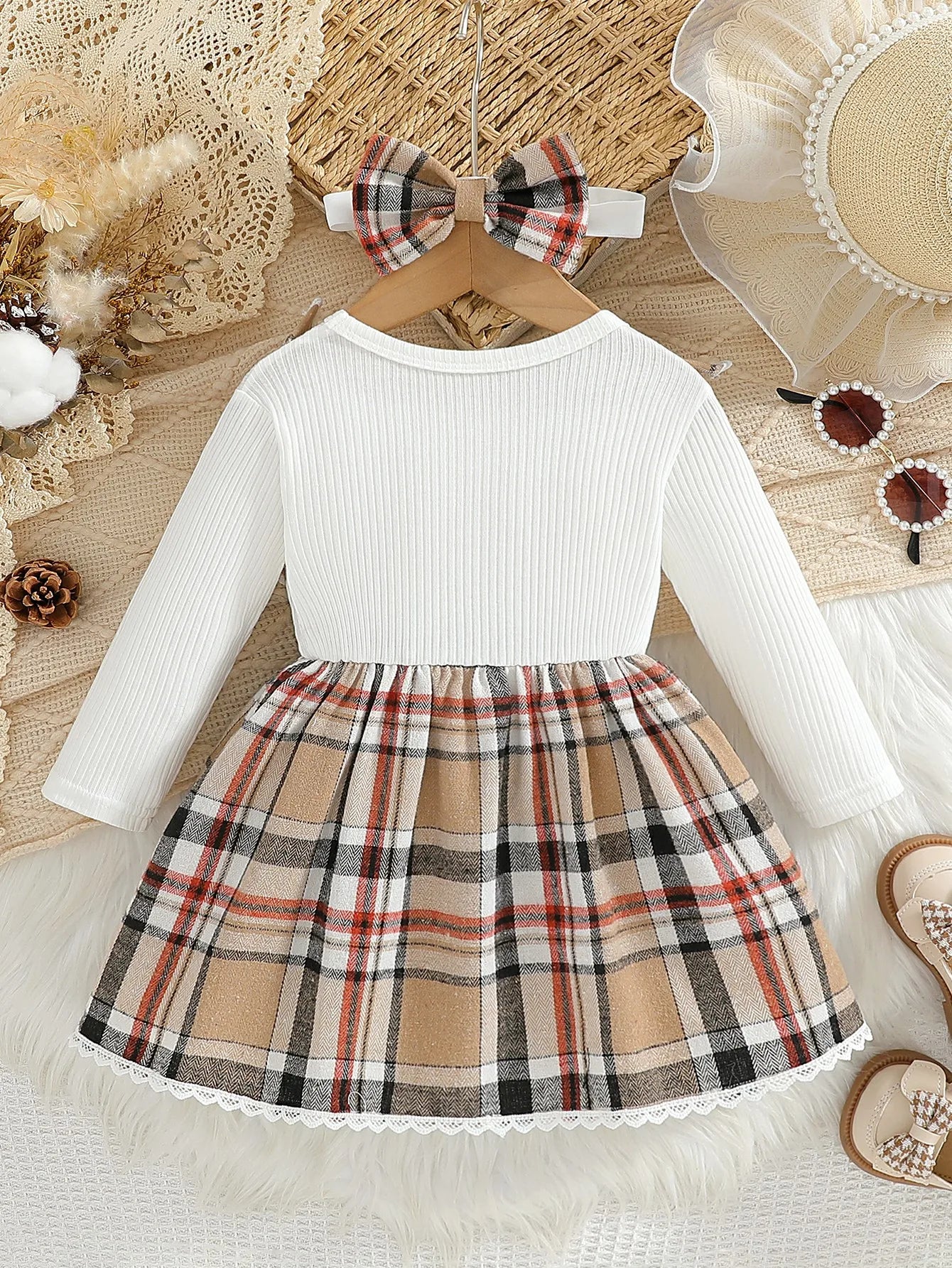 Baby girl's new fashionable plaid patchwork groove lace design bow dress and headband