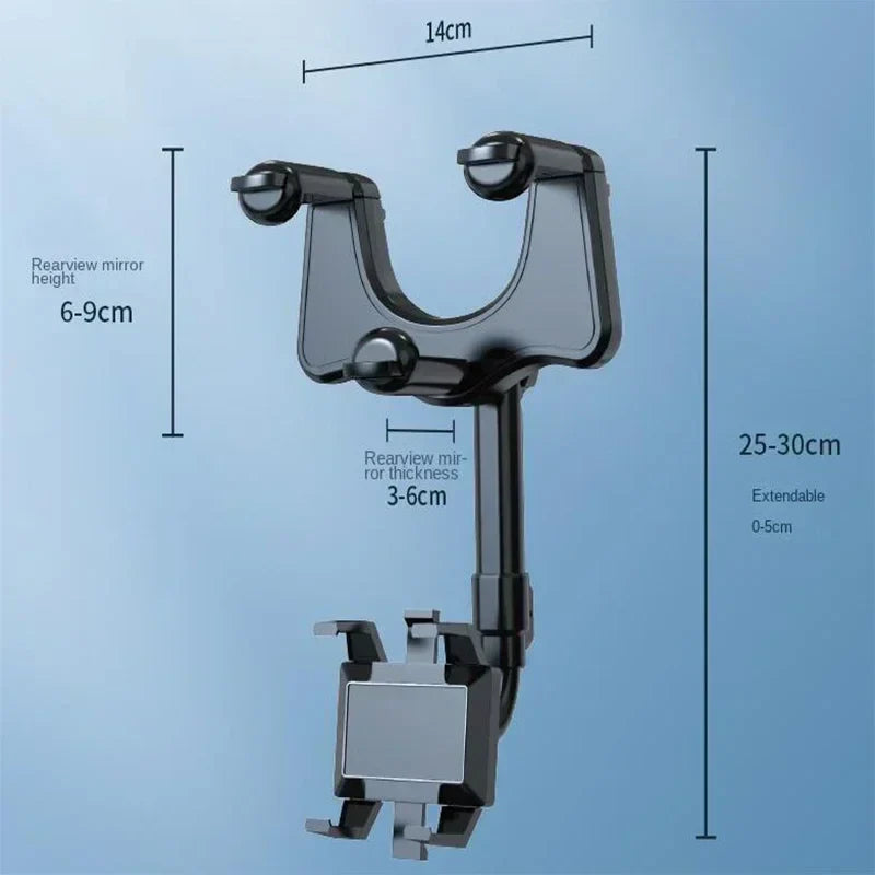 Universal Car Phone Mount with Rotating and Retractable Design for Rearview Mirror, DVR, GPS, and Dashboard Camera