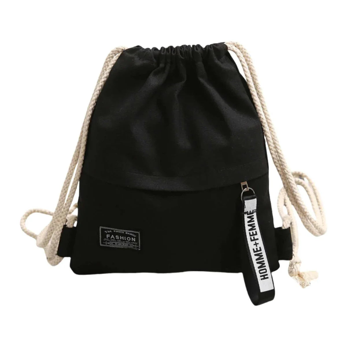Canvas School Bag Double Shoulder Drawstring Backpack Drawstring Pocket Portable Casual Backpack Women Men Travel Backpack-A-DH