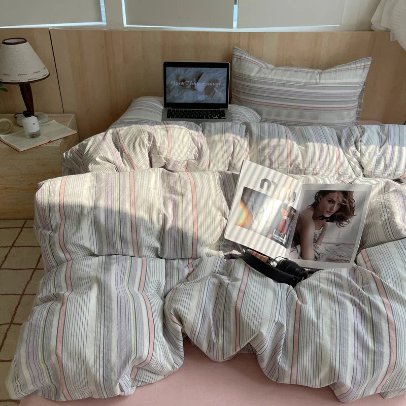 100% cotton Soft Bedding Set Stripe Printing Duvet Cover with Pillow Case Bedclothes Bedspread Pillowcases Comforter Sets