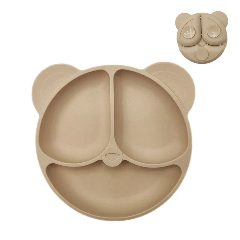 2024New Baby Safe Silicone Suker Plate Cartoon Children Dishes Feeding Toddler Training Tableware Retro Kids Smile Face Plate