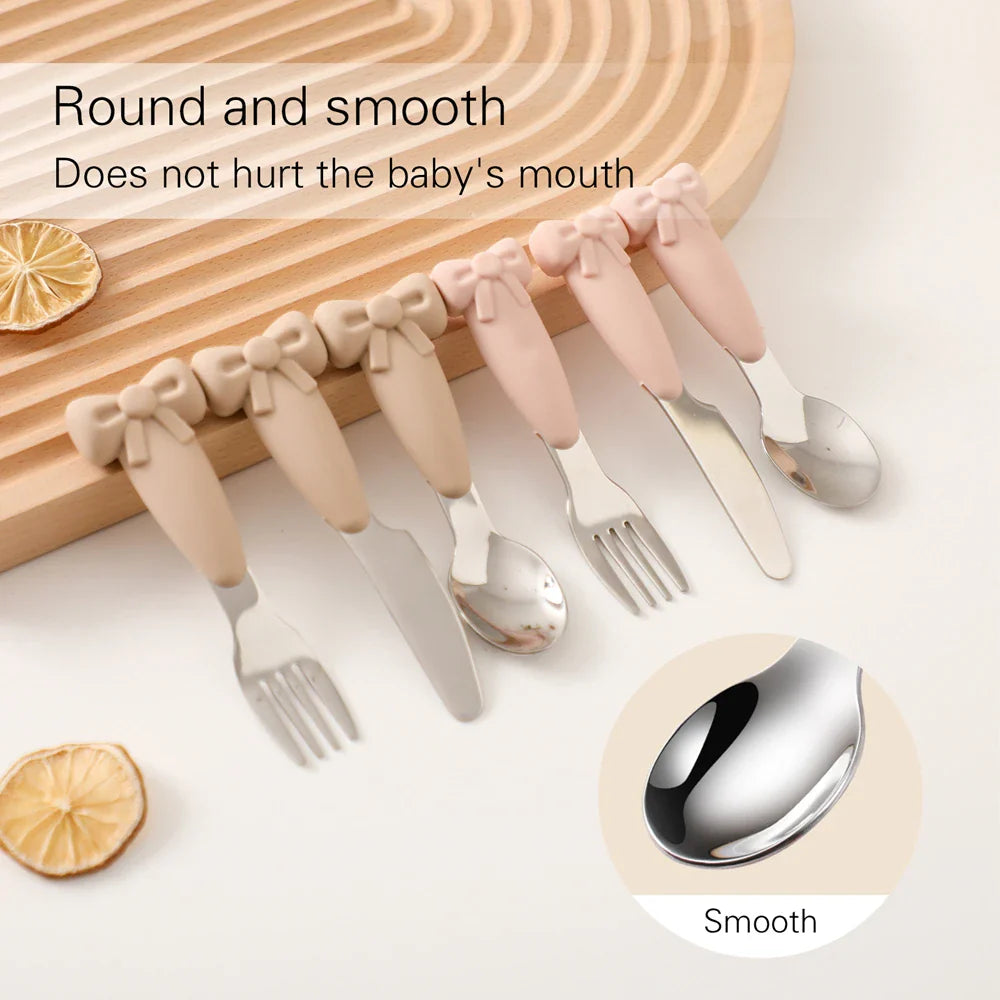 Baby Tableware Set BPA Free Silicone Bow Dish Tie Bowl Fork Food Plate Stainless Spoon Non-slip Tableware Newborn Feeding Tool
