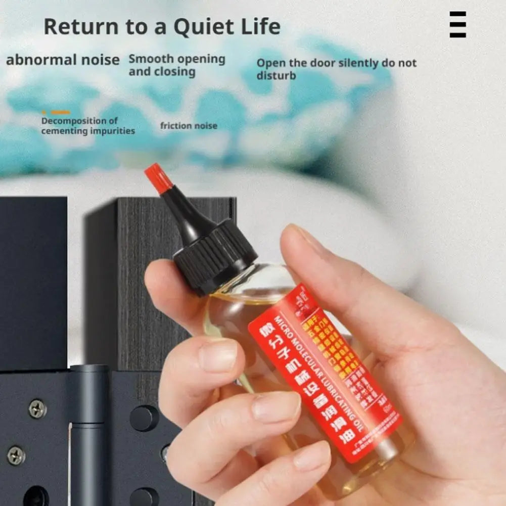 Use our door hinge noise oil to extend the service life of your equipment. Applicable to furniture, electrical appliances, toys, machinery, etc. Its permeable small molecules provide excellent lubrication, saving time and effort. Essential tools for maintaining valuable items.