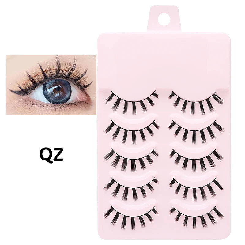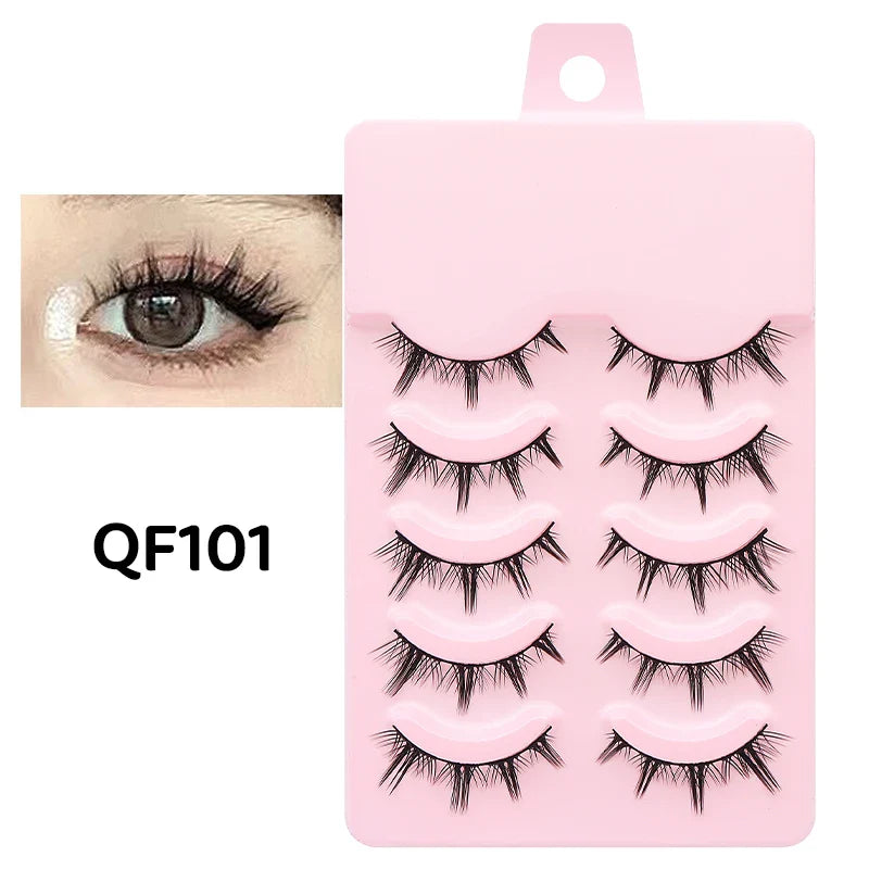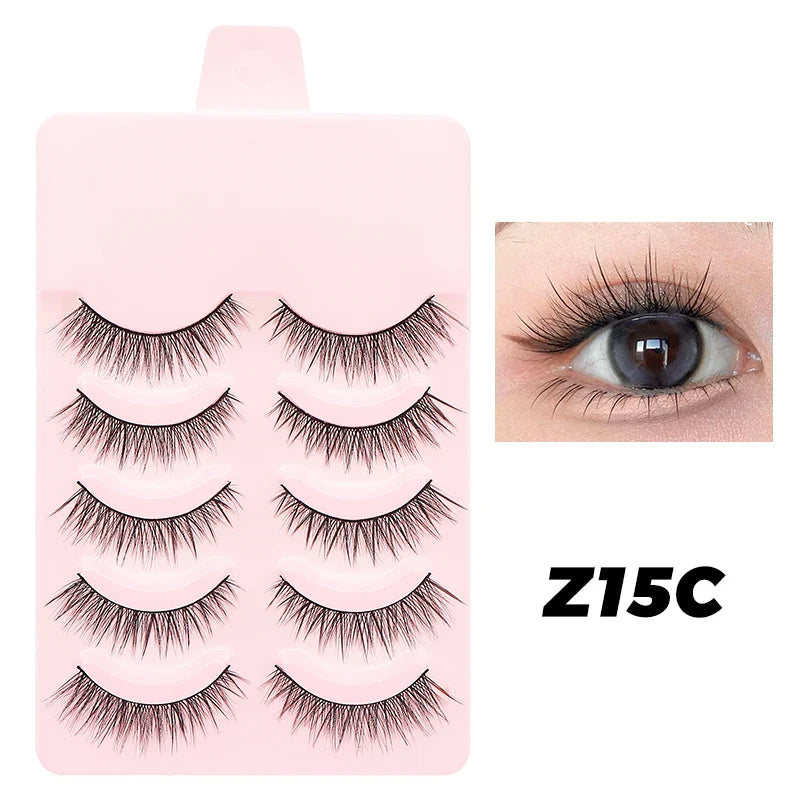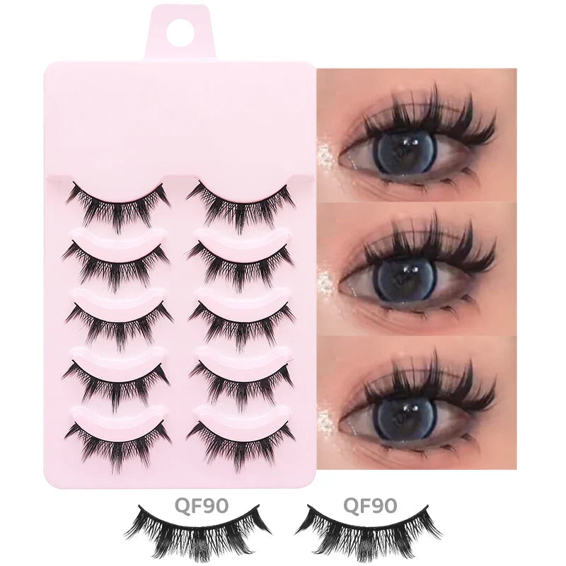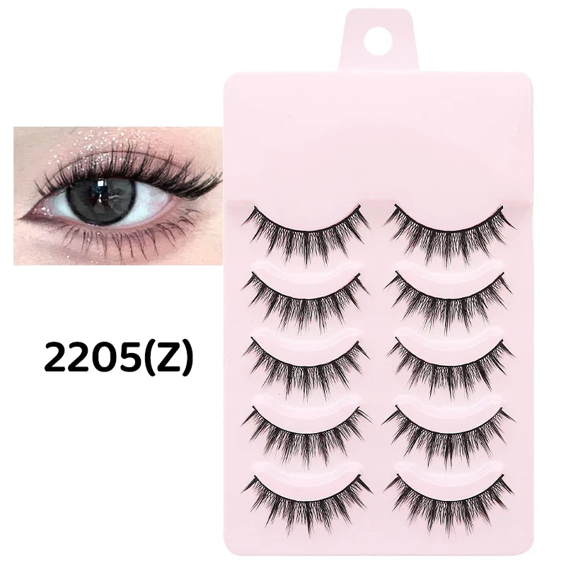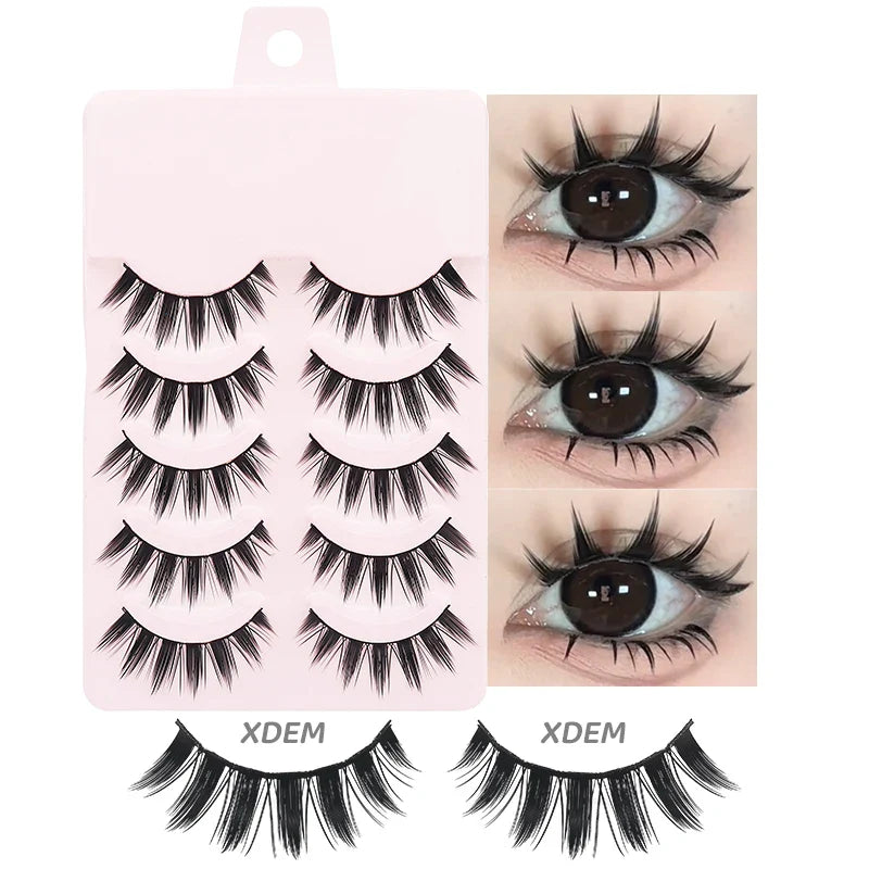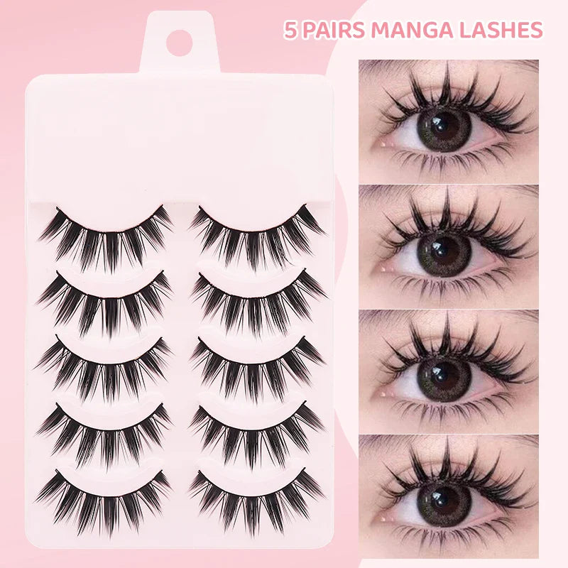 DINGSEN 5 Pairs Manga Lashes Eyes Lashes Soft Natural Long Eyelashes Fake Lashes Anime Wispy Strip False Eyelashes Makeup