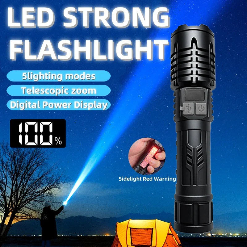 Adjustable Focus: This compact rechargeable flashlight features a zoomable head that allows it to produce both a strong focused beam and a wide spread of light. Its small size makes it easy to carry in your pocket or store in your vehicle. This flashlight features five settings: low light, high light, strobe light, and a side light option, allowing you to easily switch between them to suit various lighting conditions. Product Overview Rechargeable High Lumens Flashlights