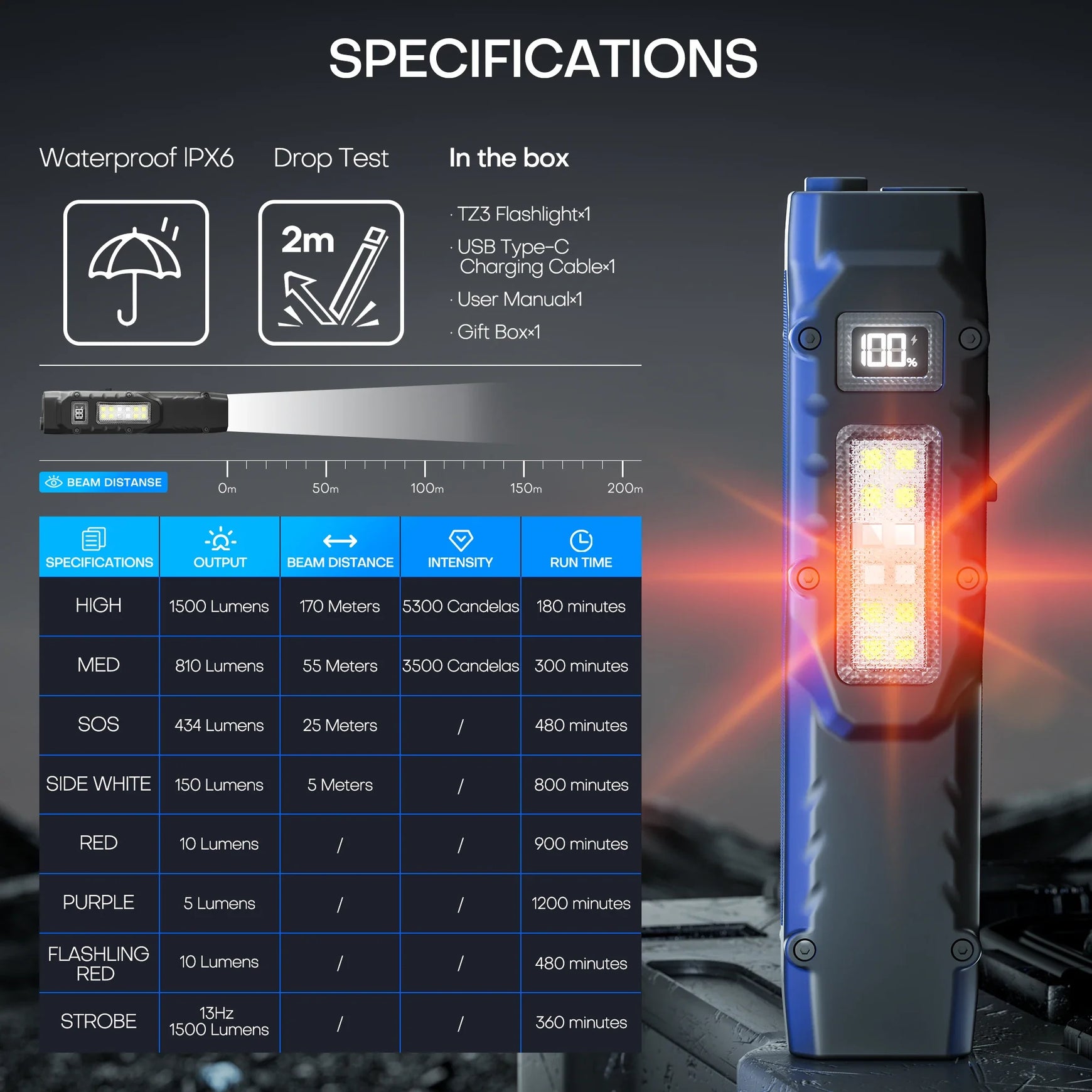 Rechargeable 1500 Lumen Flat Flashlights EDC Tactical Flashlight,Dual-Switches LED Small Flashlight with Digital Display,Stainle