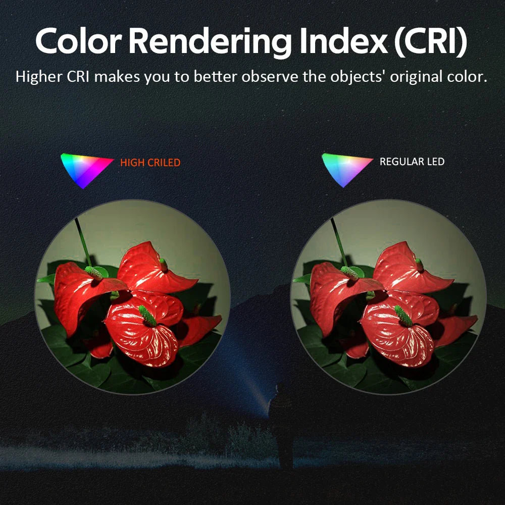 Flashlight body: Aerospace grade 6061 grade aluminum alloy, CNC manufactured to hard-anodized to military grade specification type Ill, anti-abrasive finish to get solid built body, anti-crash geometry and better heat exchange.