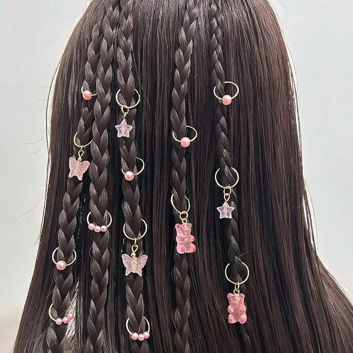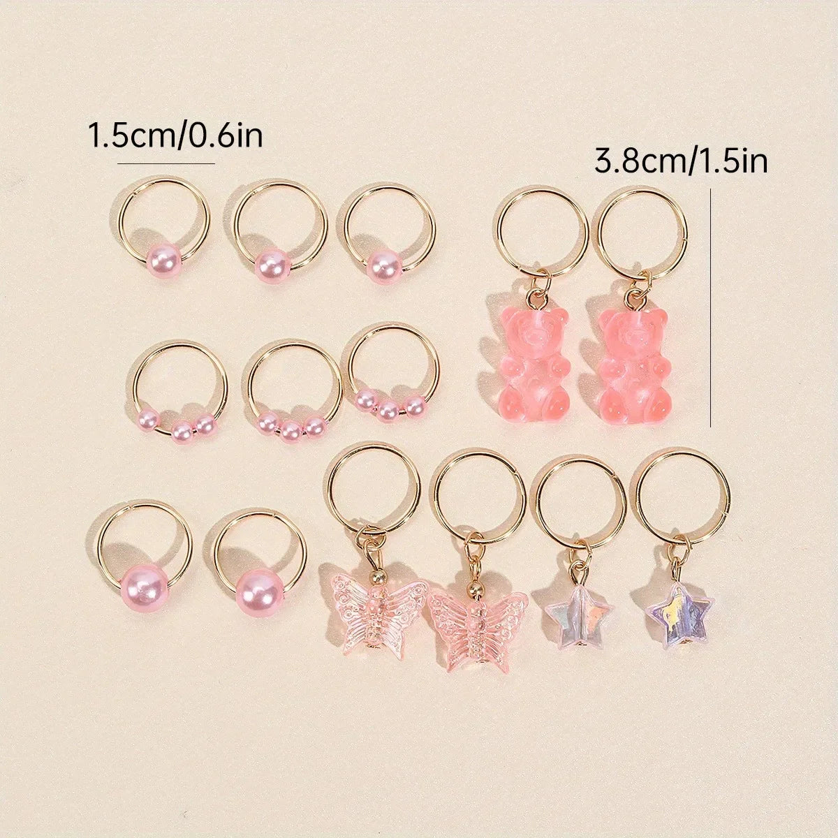 14pcs Cute Butterfly Bear Hair Braid Rings for Girls - Pearl Shaped Bead Clips - Essential Party Dress Accessories-Perfect Gift