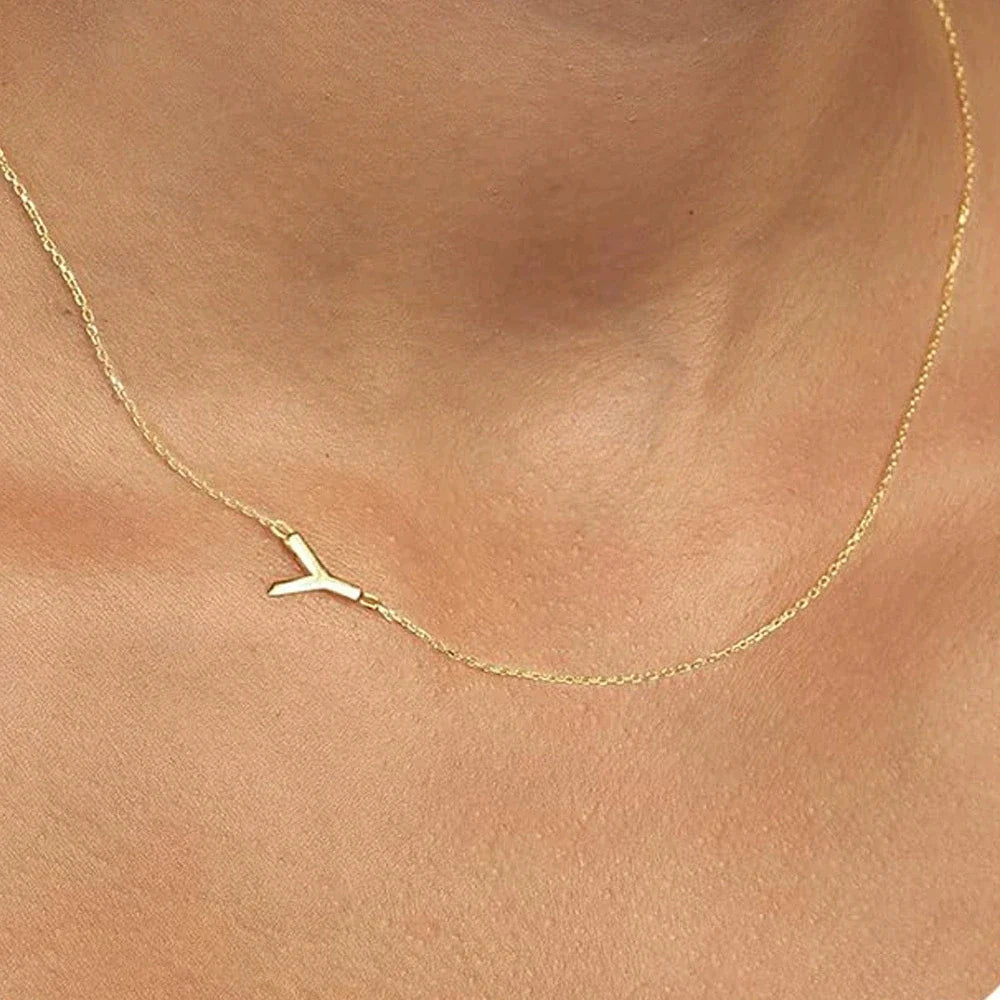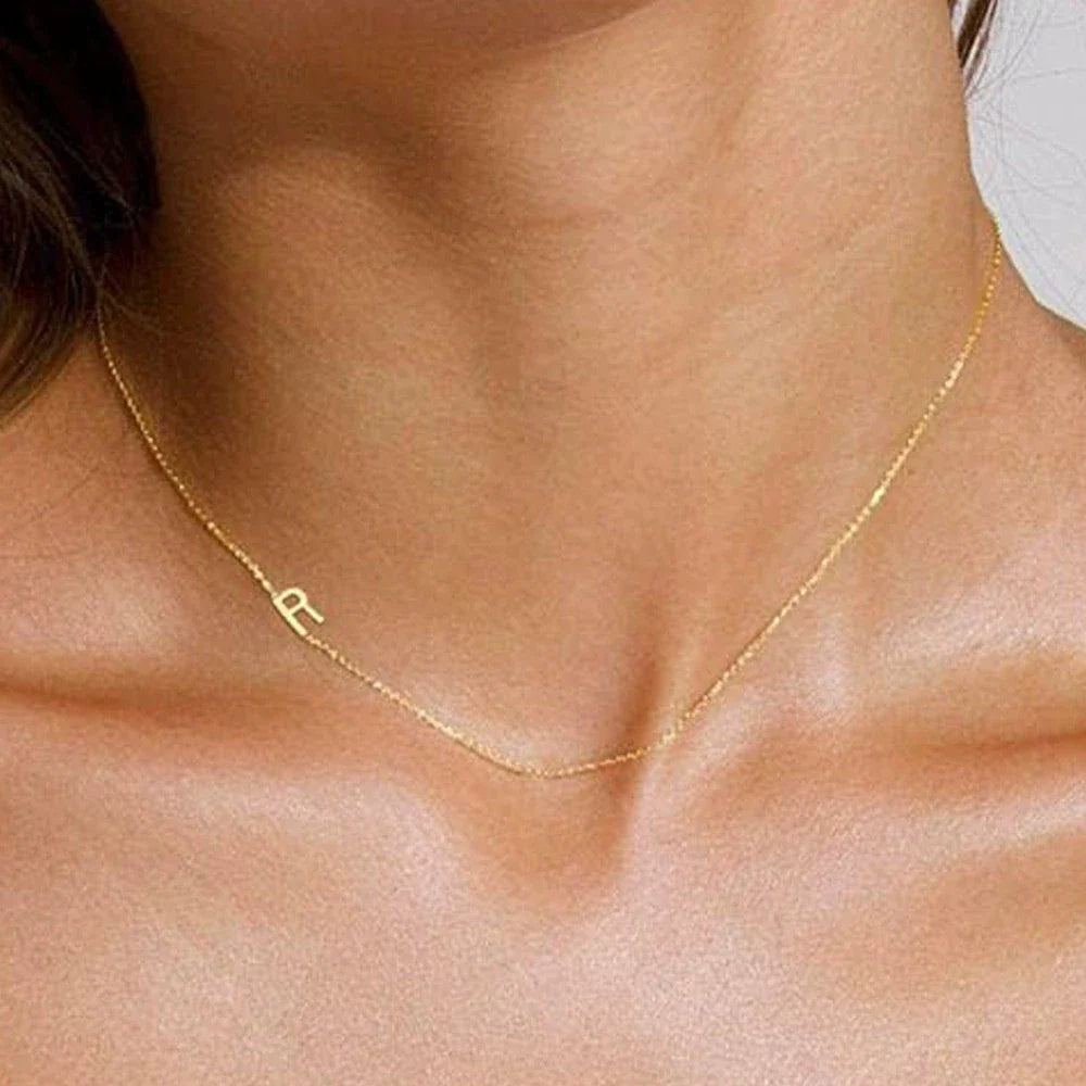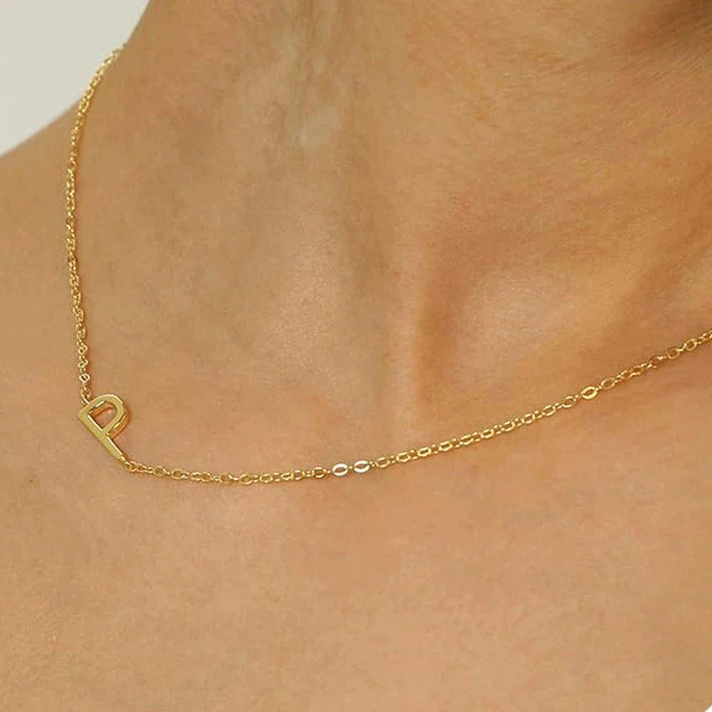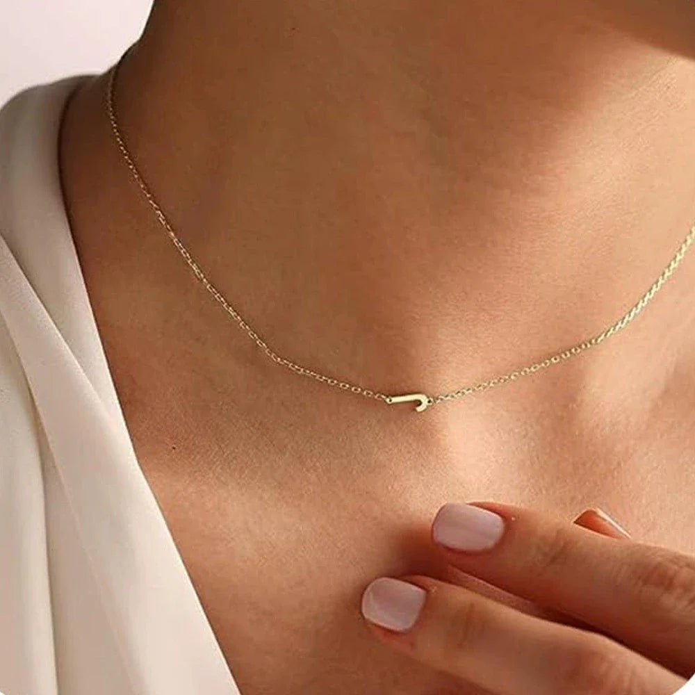 Sideways English Letter Initial Necklace 18K Gold Plated Stainless Steel Necklace Minimalist Initial Pendant Necklace for Women