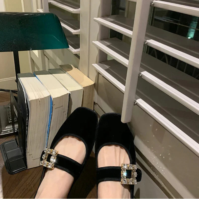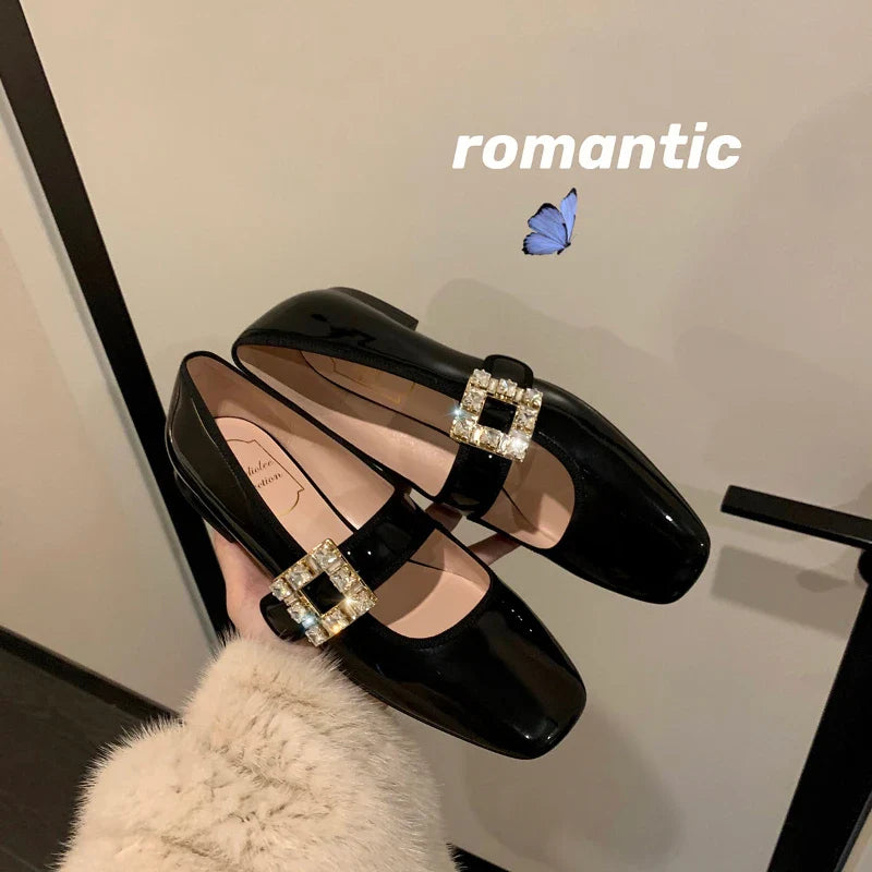 Shoes for Women Autumn New Style Square Head Rhinestone Square Buckle Flat Bottom Mary Jane Single Shoes Women Zapatos De Mujer