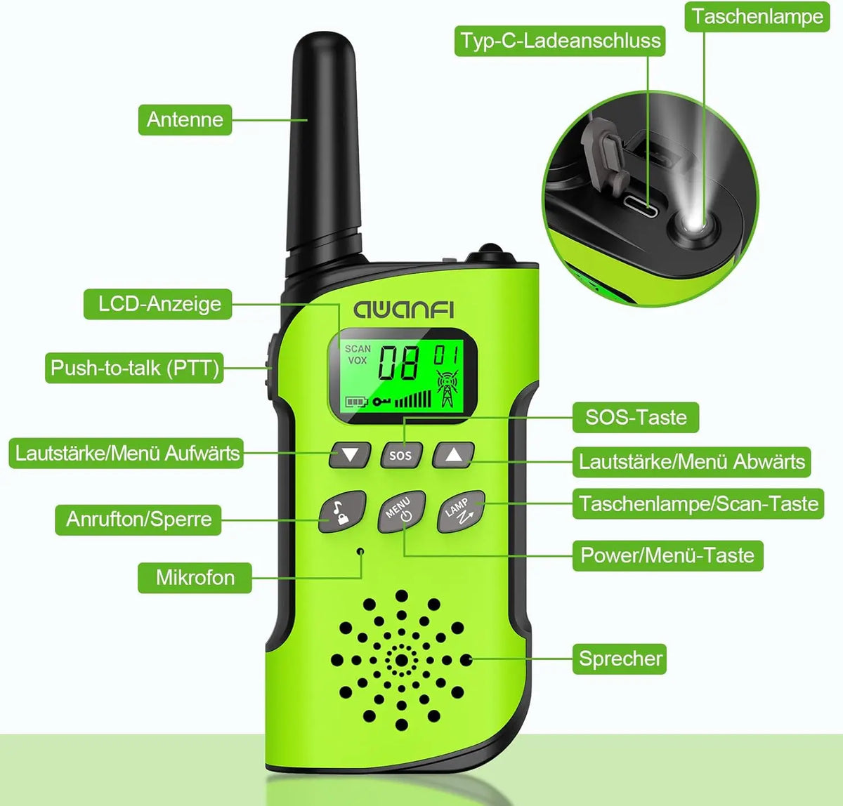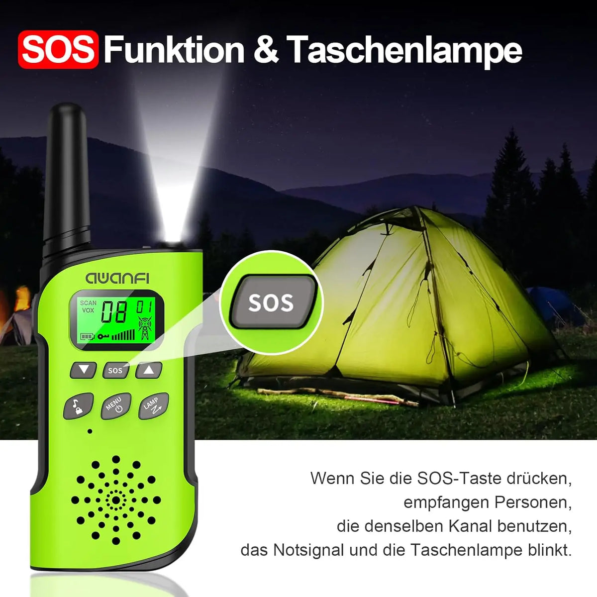 AWANFI Walkie Talkie Children, 3-12 Years, Walkie Talkie Rechargeable with Li-ion Battery, Radio Set, for Gift/Camping/Adventure
