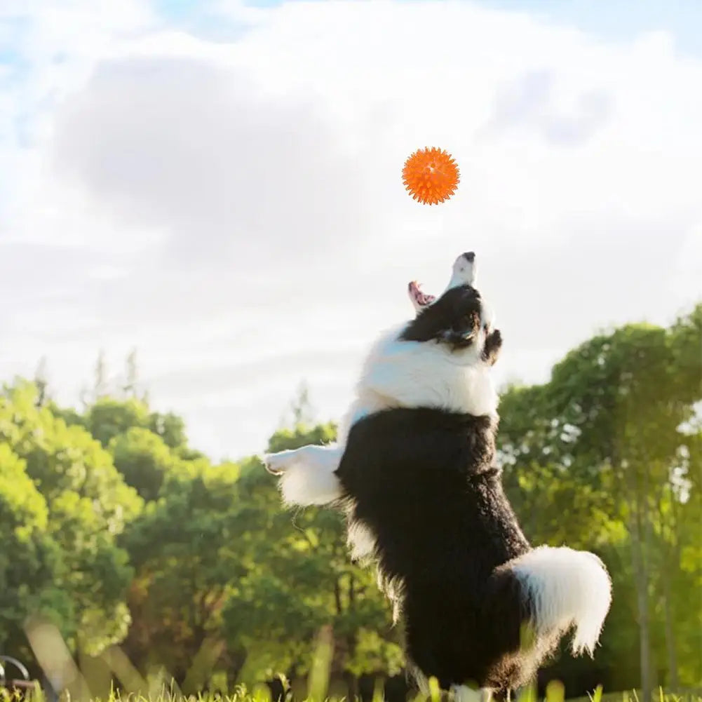 Squeak Ball for Dogs: There is a deeply hidden squeaking sound inside, which means it is difficult for dogs to squeeze it out and there is no risk of suffocation when chewing or playing. No matter how your dog bites, the pointed ball will continue to make cute sounds, not too loud, but still catch the dog's attention.