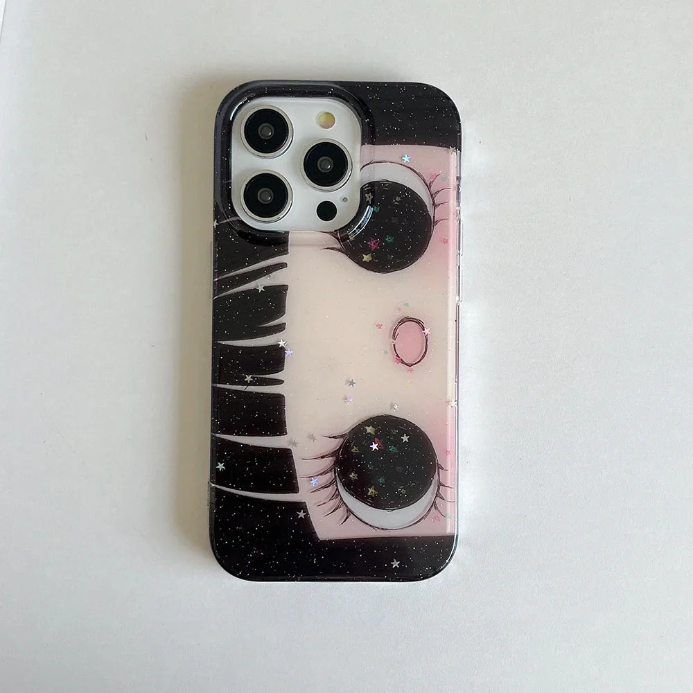 Cartoon Anime Shinning Eyes Cute Phone Case for IPhone 17 16 15 14 13 Pro Max Girl Glittering Big Eyes Back Phone Cover Capa