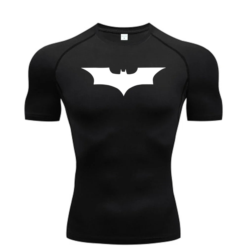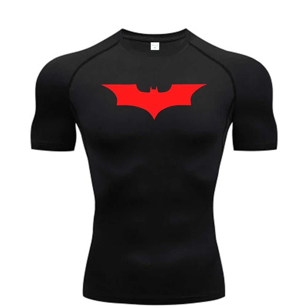 Bat Printed Men's Tight T-Shirt Running Compression Compression T Shirt Gym Fitness Jogging Short Sleeve Male Casual Shirt Tops