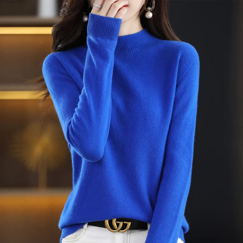 New Fashion Autumn And Winter Pure Wool Sweater Top Women's Semi-Turtleneck Solid Color Long-Sleeved Fashion Pullover Sweater101