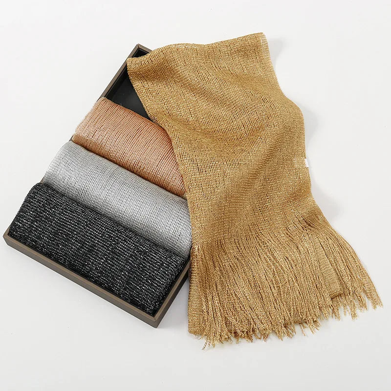 Fashion Bright Silk Sunscreen Shawl Hijab Gold Silver Shiny Scarves For Women Lace Tassel Party Evening Dress Scarf