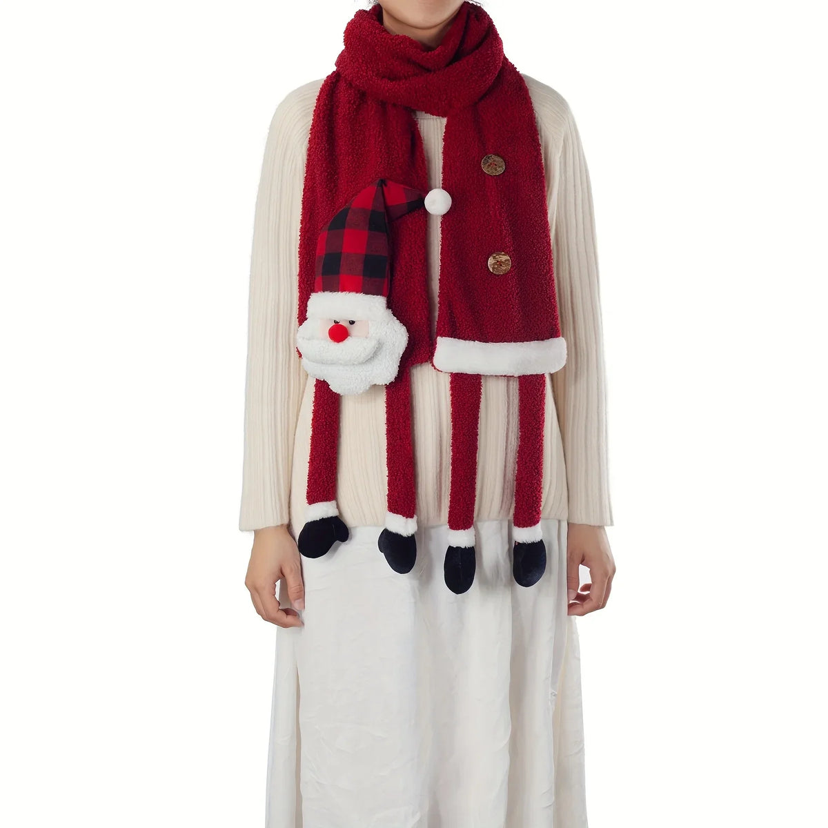 Women's Christmas Scarf Plush Warm Soft Extra-Long Snowman Santa Claus Reindeer-Patterned Scarves Winter Fashion Shawls