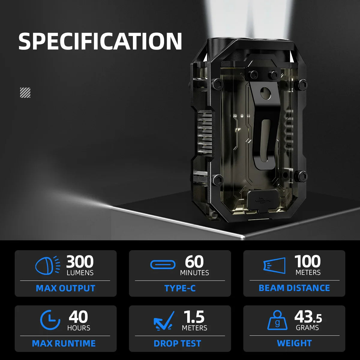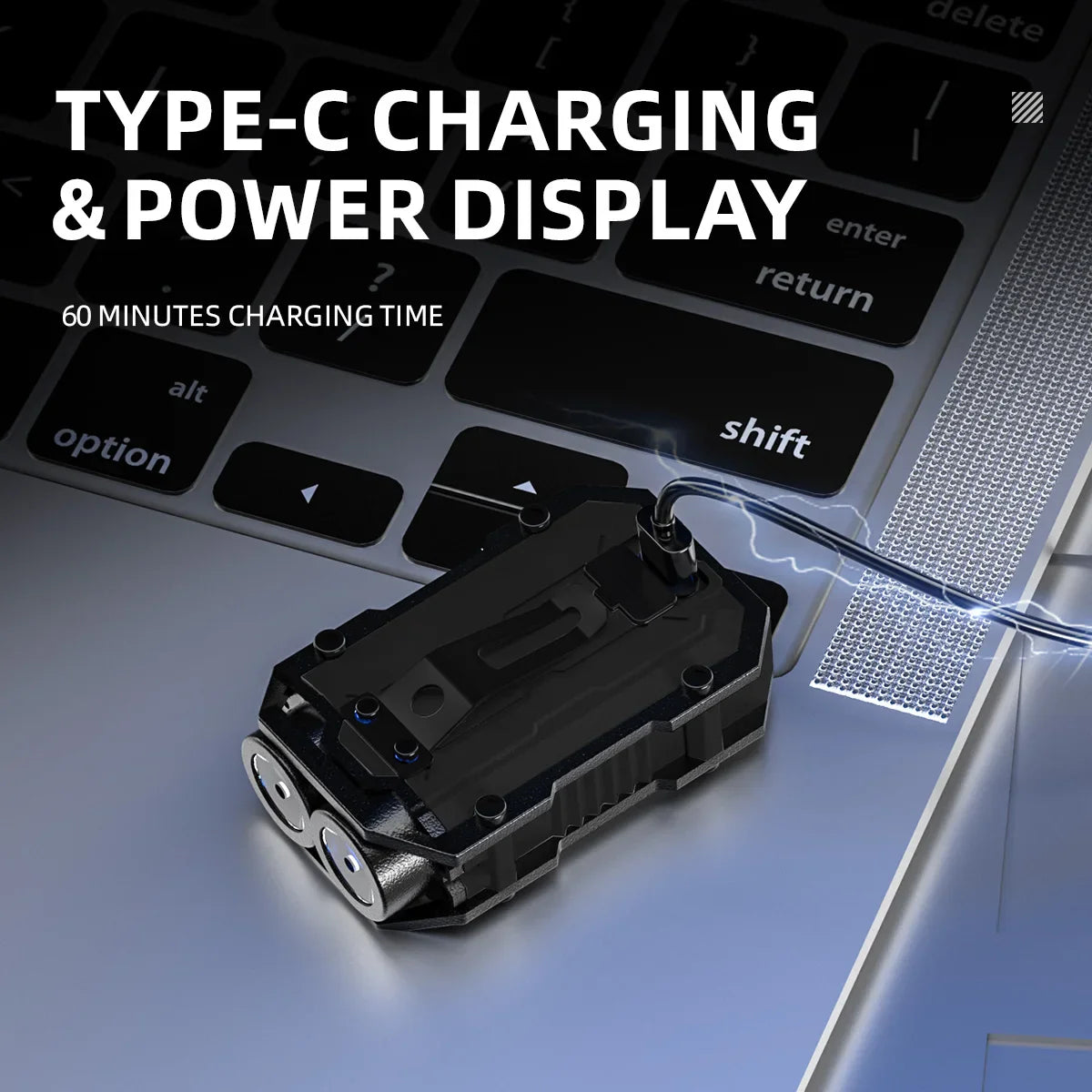 WARSUN Mini LED Flashlight SQ10 Rechargeable Keychain Torch Light with Clip Headlight for Outdoor Camping Hiking Emergency