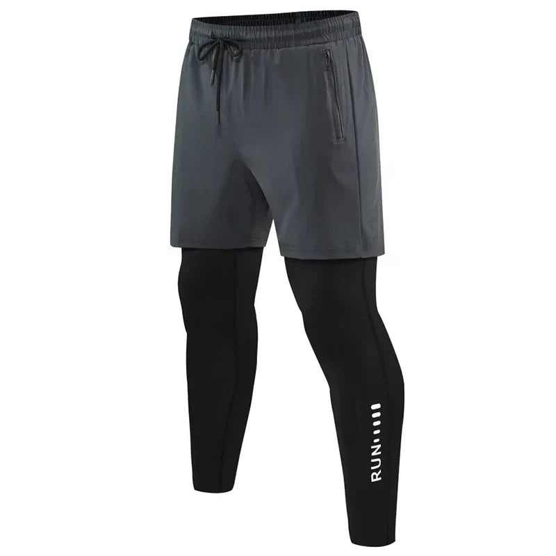 Men 2 In 1 Running Pants Double Layer Pant Tight Training Basketball Legging Fitness Sweatpant With Pockets Running Trousers