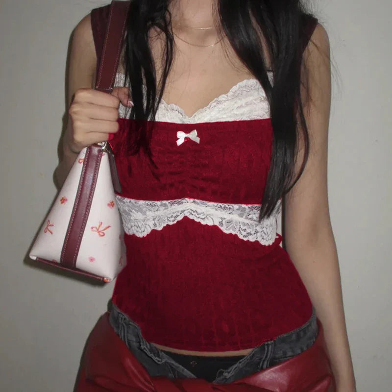 90s Vintage Cutest Lace Trim Camis Women Aesthetic Grunge Slim Fit Milkmaid Vest 00s Retro Y2k Cottage Crop Top Coquette Clothes