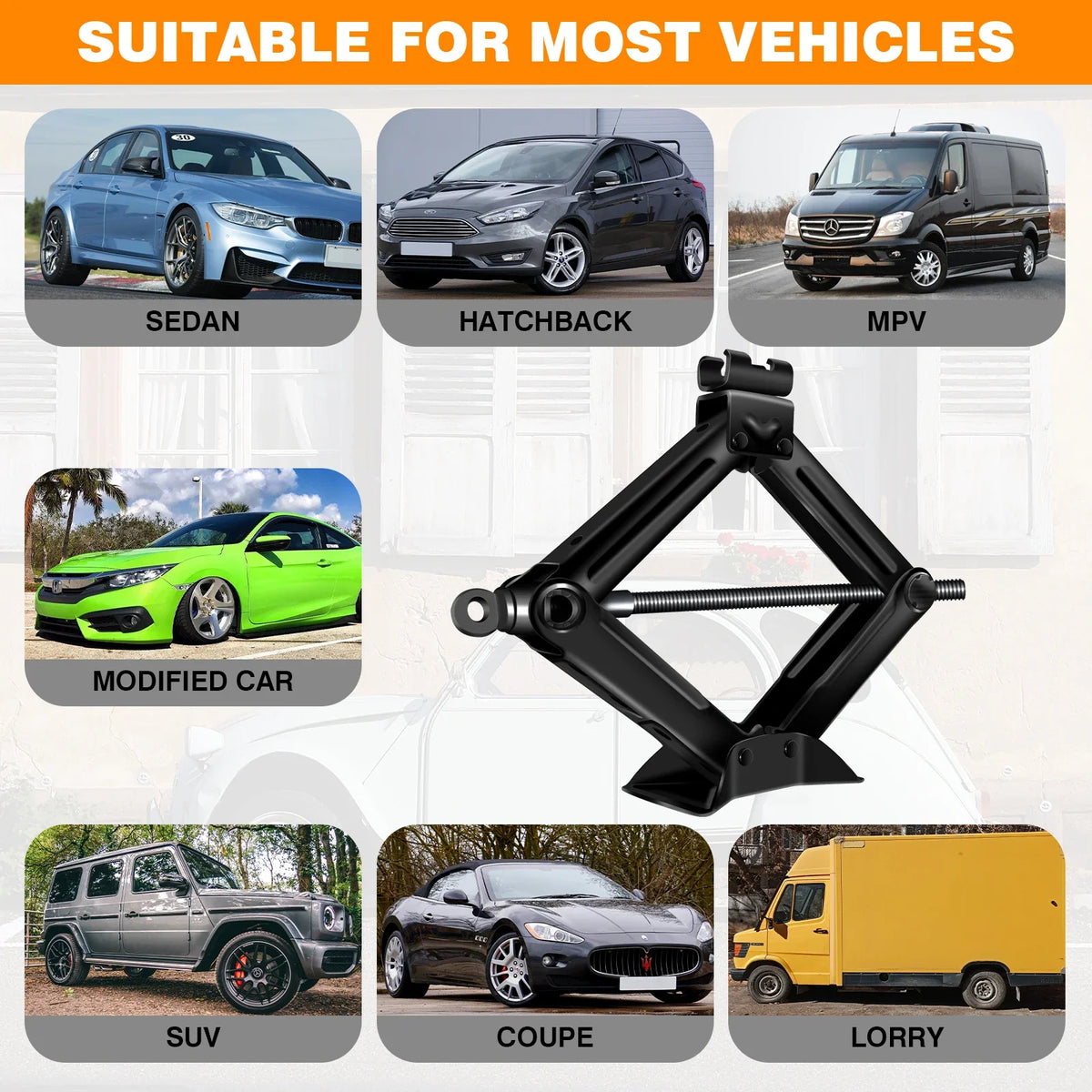 The scissor jack, with tooth gears, can extend from 90mm(close position) to 360mm, more than enough to lift most vehicles. Easy to operate using the chromed crank with speed handle.